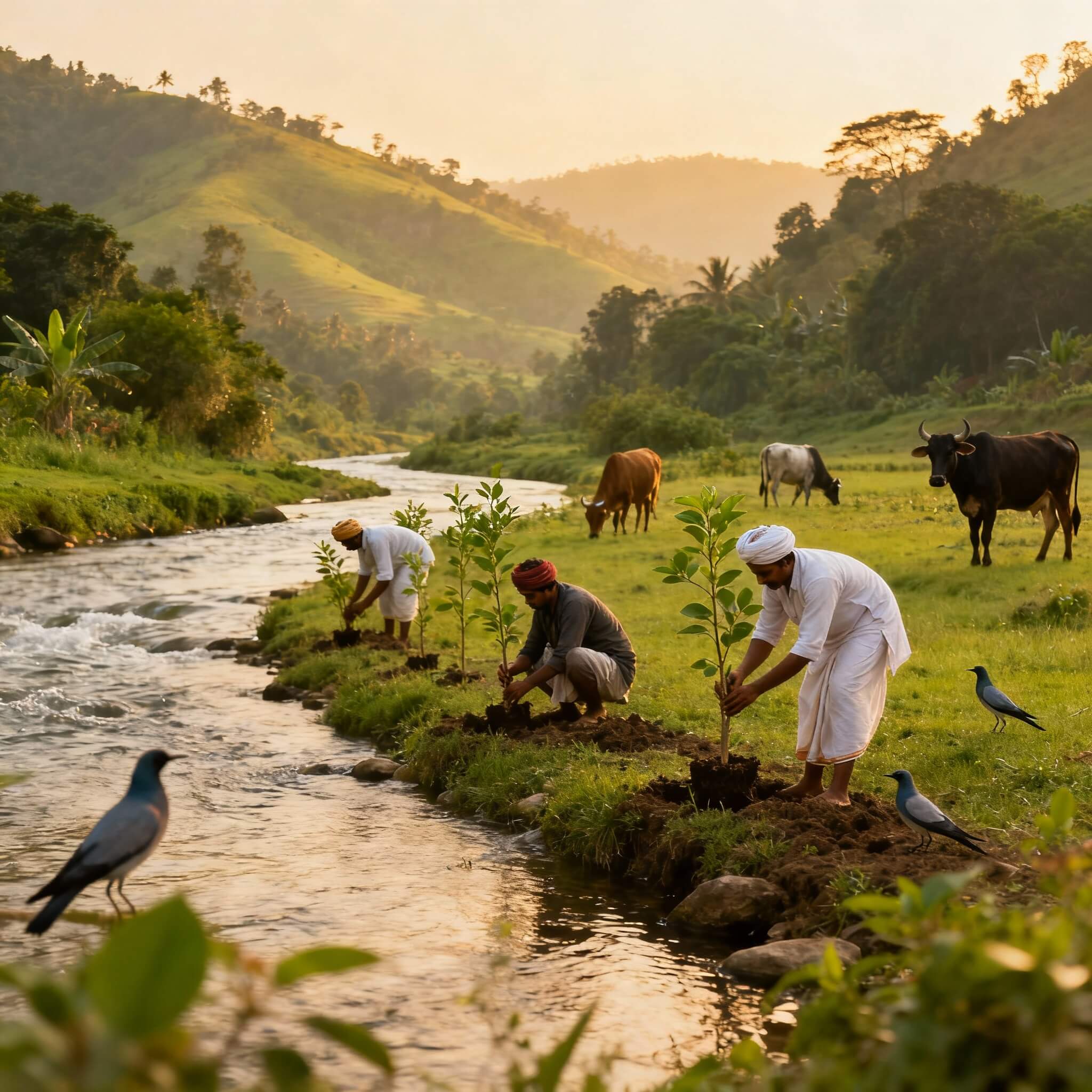 Promoting environmental responsibility through large-scale plantation drives, ecological restoration projects, and sustainable living practices. These initiatives aim to revive natural ecosystems, enhance biodiversity, reduce environmental degradation, and instill awareness about harmonious coexistence with nature, in line with the principles of Sanatan Dharma. By fostering a culture of sustainability and ecological stewardship, we strive to ensure a cleaner, greener, and healthier planet for present and future generations.